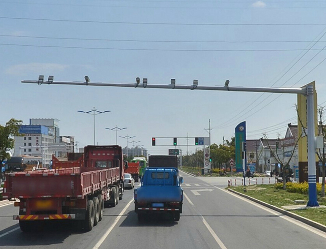 垂直度檢驗(yàn):電子警察監(jiān)控立桿直立后,使用經(jīng)緯儀對桿的兩向垂直度作檢驗(yàn),垂直度偏差1.0≤%。